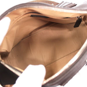 * Pebbled brown leather trim with hanging "Dior" silver tone plaque