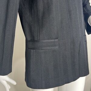 Christian Dior Sz 6-8 Black Wide Pin Stripe Collarless Hidden Button Blazer