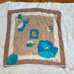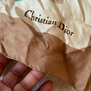 Christian Dior Tan and Blue Floral Scarf