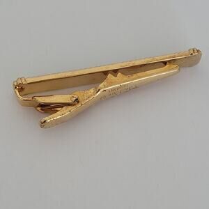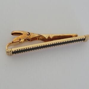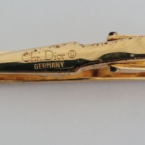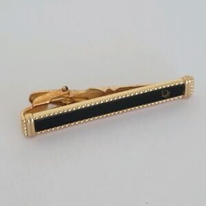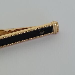 Christian Dior Tie Bar Clip Clasp Gold Black Tone Logo Vintage Designer Germany