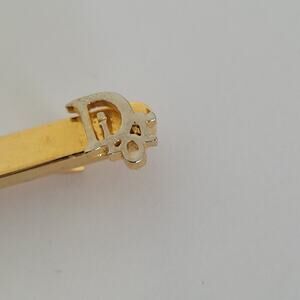 Christian Dior Tie Bar Clip Clasp Gold Tone 2in Logo Vintage Minimalistic