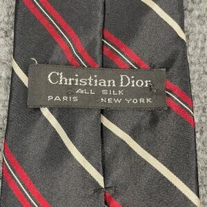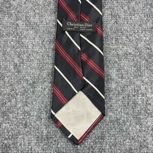 Christian Dior Tie Black/Red/White Jacquard Striped 3" X 58" All Silk Designer