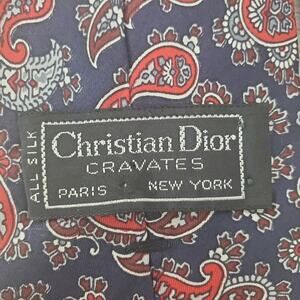 Christian Dior Silk Tie. Red and blue paisley pattern. Excellent Preowned Condition, no flaws.