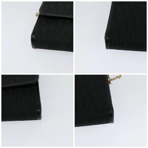 Christian Dior Trotter Canvas Chain Shoulder Bag Black Gold Auth yk18198
