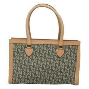 Christian Dior Trotter Canvas Hand Bag Khaki Gold Auth 123689