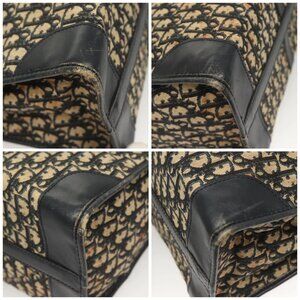 Christian Dior Trotter Canvas Hand Bag Navy Gold Auth 126103