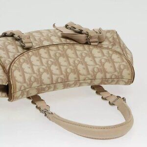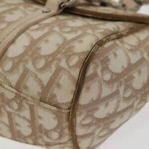 Christian Dior Trotter Canvas Romantic Hand Bag PVC Beige Silver Auth 100673