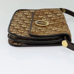 Christian Dior Trotter Canvas Shoulder Bag Brown Gold