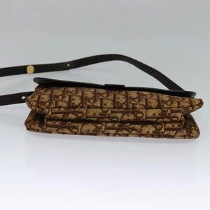 Christian Dior Trotter Canvas Shoulder Bag Brown Gold Auth 118343