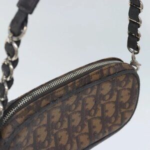 Christian Dior Trotter Canvas Trotter Romantic Pouch PVC Brown Silver Auth 93042