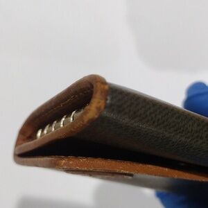 Elevate your key organization with this stylish Christian Dior key case. Featuring a sophisticated grey, brown, and gold trotter pattern, this key case exudes luxury and elegance. With six rows to hold your keys securely, it's both practical and fashionable. Measuring 3.9 x 2.5 inches, it's compact enough to fit in your purse or pocket while keeping your keys organized in style.