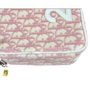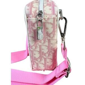 Christian Dior Trotter No. 2 Pink & White Crossbody Bag (CDXX125) Exterior PVC Coated Canvas is in excellent condition Little to no rubbing on corners as shown Edges are very clean as shown Slight discoloration on zipper edge from normal use Interior is very clean with no discoloration, peeling, or stickiness Guaranteed Authentic Measures 7"H x 5"W x 2"D