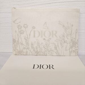 Christian Dior Trousse Zippered Pouch in Floral and Cream Canvas with Box NWT