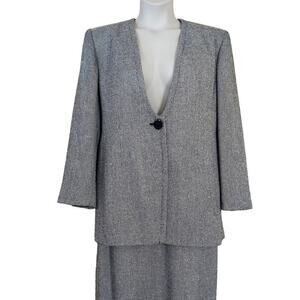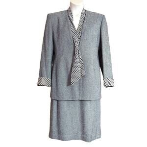 Christian Dior VTG 80's 2-Piece Black & White Wool Blend Business Skirt Suit