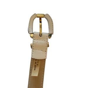 Christian Dior VTG 80s Belt Women Medium White Genuine Leather Skinny Gold Logo