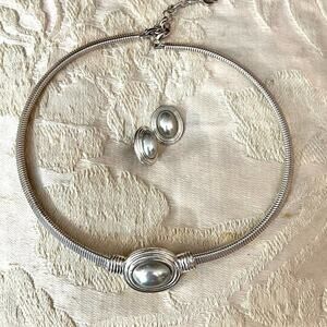 Christian Dior Classic Vintage 1980s Silver Tone Choker Necklace & Earrings Set