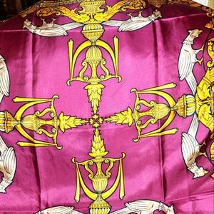 Christian Dior vintage luxurious silk scarf with intricate purple and gold design. Perfect for adding a touch of elegance to any outfit.Size is 34×35". Open to reasonable offers.