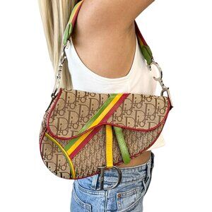 Christian Dior Vintage 2004 Trotter Monogram Logo Saddle Bag Rasta [105655]