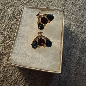 Chic Dior earrings with gold finish and deep purple stones. Perfect for elegance.