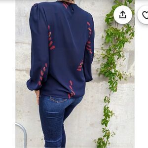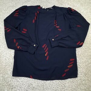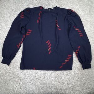 Christian Dior Vintage 90's Sheer Blouse Navy Blue Red Print