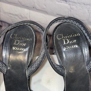 These Dior heels feature a striking combination of black and red, with a high stiletto heel and a sleek, glossy finish. The open back with a slingback strap adds a touch of elegance, making them perfect for formal occasions.