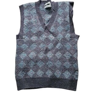 Christian Dior Vintage Argyle Wool gray blue Elegant preppy vest size S -L