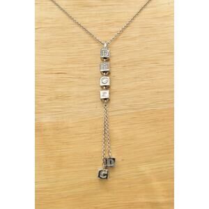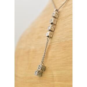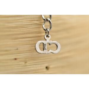 Christian Dior Vintage Block Logo Necklace Pendant Tassel CD Silver Signed BinBJ