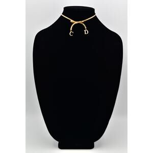 Christian Dior Vintage Bow Choker Necklace Logo CD Charm Gold Chain Signed BinBJ