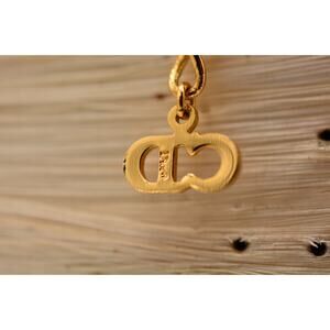 Christian Dior Vintage Bow Collar Necklace Logo CD Charm Gold Chain Signed BinA