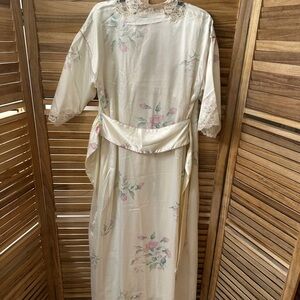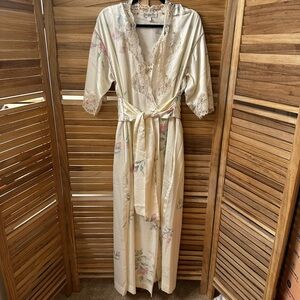 Christian Dior Vintage Floral Robe and Silky Slip Dress Set Size M