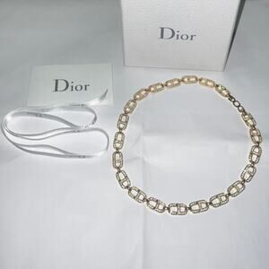 Christian Dior Vintage GD Rhinestone Gold Plated 16" Necklace W/Box