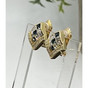 Christian Dior Vintage blue and clear rhinestone gold plated clip earrings