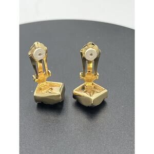 Christian Dior Vintage Gold Plated Diamond Shaped Blue Stone Clip On Earrings