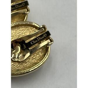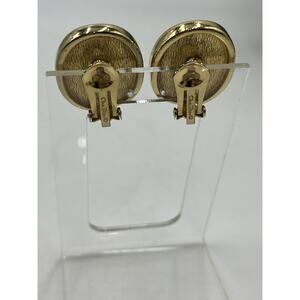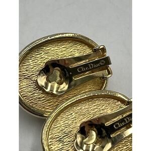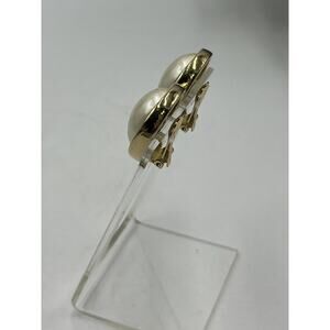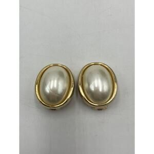 Christian Dior Vintage Gold Tone Oval Clip On Earrings Faux Pearl Cabochon