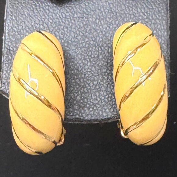 Christian Dior Vintage Gold-Tone Clip-On Earrings Enamel Swirl Twisted Design