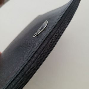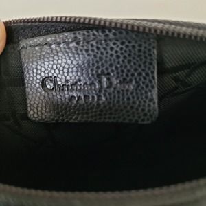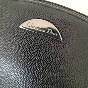 Christian Dior Vintage Leather Black Cosmetic Pouch Bag Zip Around Small Logo