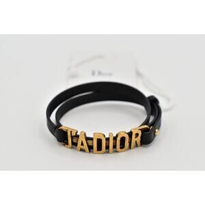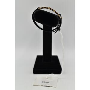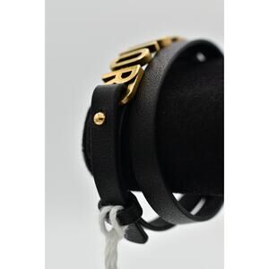 Christian Dior Vintage S Jadior Bracelet Wrap Black Leather Antiqued Gold NWT