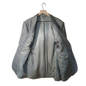 Christian Dior Vintage Single Breasted Wool Light Gray Window Pane Blazer Sz 44L