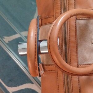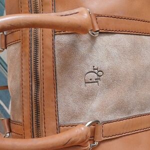 Christian Dior Vintage Tan and Brown Leather Duffel Bag