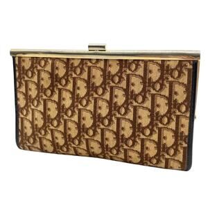 Christian Dior Vintage Trotter Canvas Brown Leather Clutch Bag