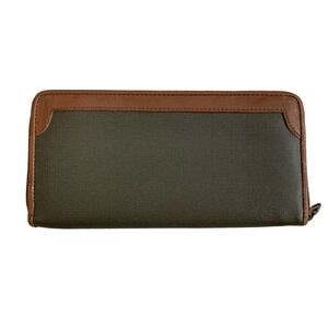 Christian Dior Vintage Wallet Olive Brown Leather Logo Zip Around