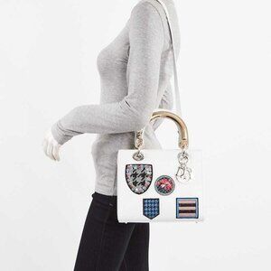 Christian Dior White Leather Embroidered Medium Lady Dior Bag