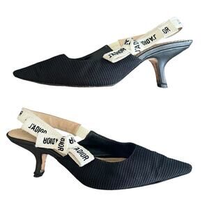 Christian Dior Women’s J’Adior Ribbon Black Cloth Point Toe Kitten Heels Sz 37