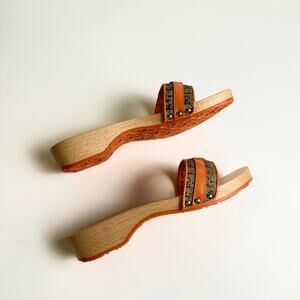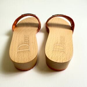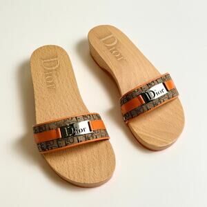 Christian Dior Y2K Slippers Size 36 Monogram Logo Canvas Wooden Insole Sandals
