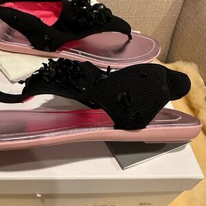 Christian Dior black nylon printed T-strap sandals size EU41/ US11 new