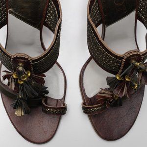 Christian Dior cracked leather in dark reddish brown ID "Hollywood" Sandals.