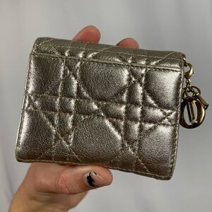 Christian Dior metallic silver leather 'Lady Dior Lotus' compact trifold wallet