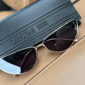 Stylish Christian Dior sunglasses with gold frames and black lenses. Perfect for a chic look. Worn once