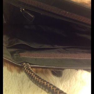 This Christian Dior bag was purchased in Paris and is designed with several different types, lengths and colors of fur! The double strap is dark brown braided leather. The satin lined inside has one zippered pocket and one open pocket. This is a very unique Dior bag!