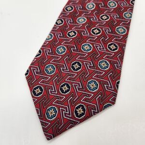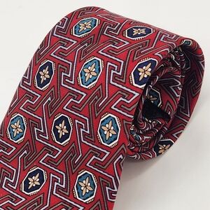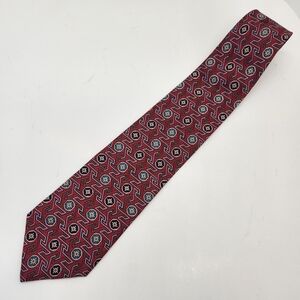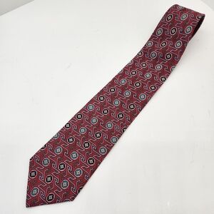 Christian Dior necktie red 100% silk tie geometric foulard formal Made in USA